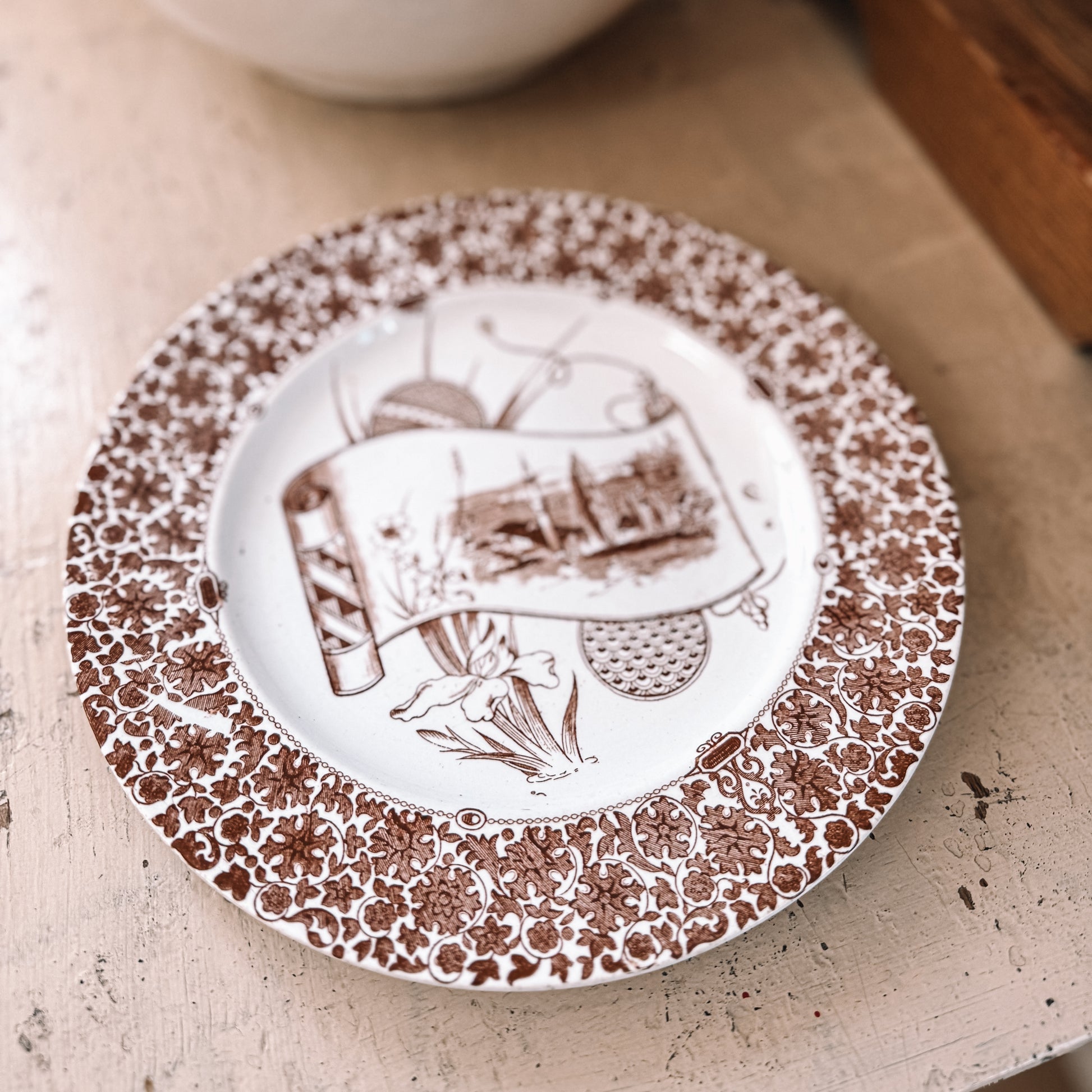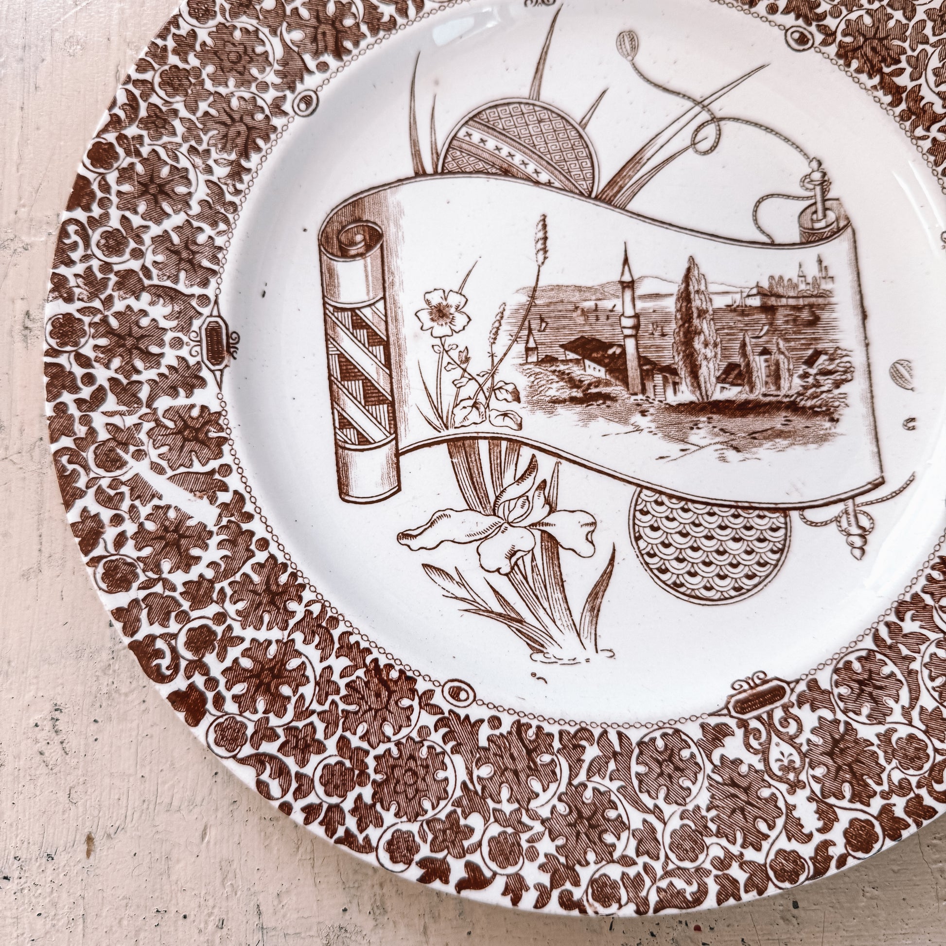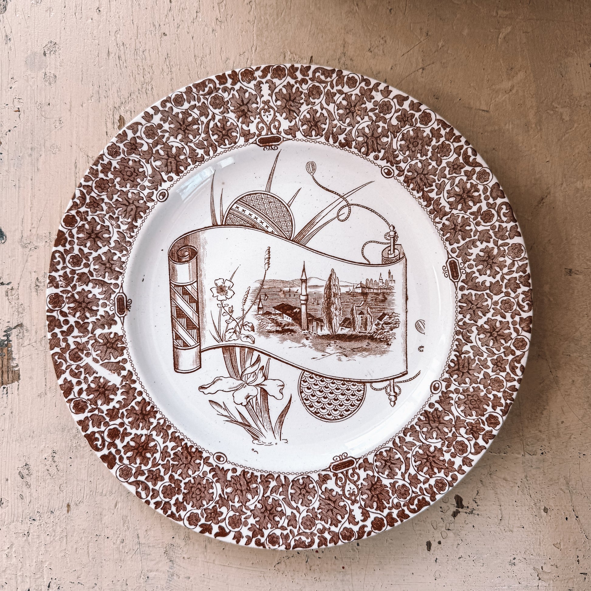Antique Brown Transferware Plate