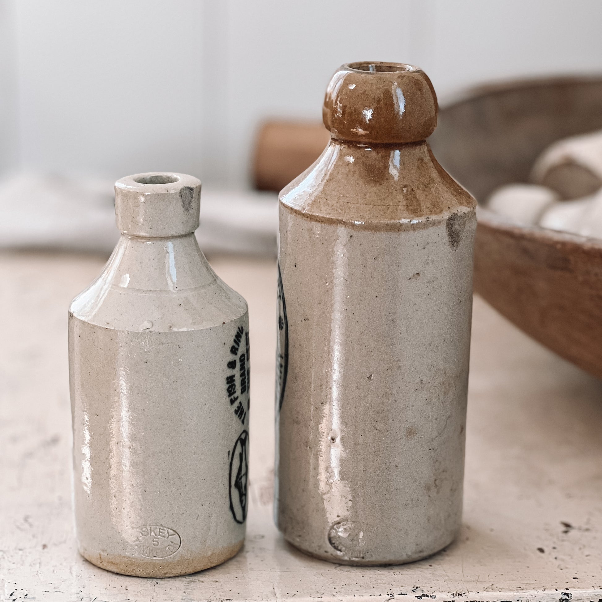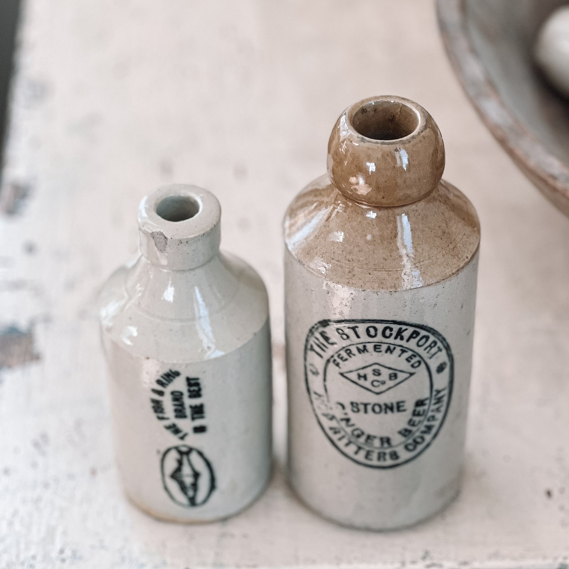[K] The Stockport Hop Bitters Company, Two Tone Tan and Caramel Glazed Bottle measures ~7"h
