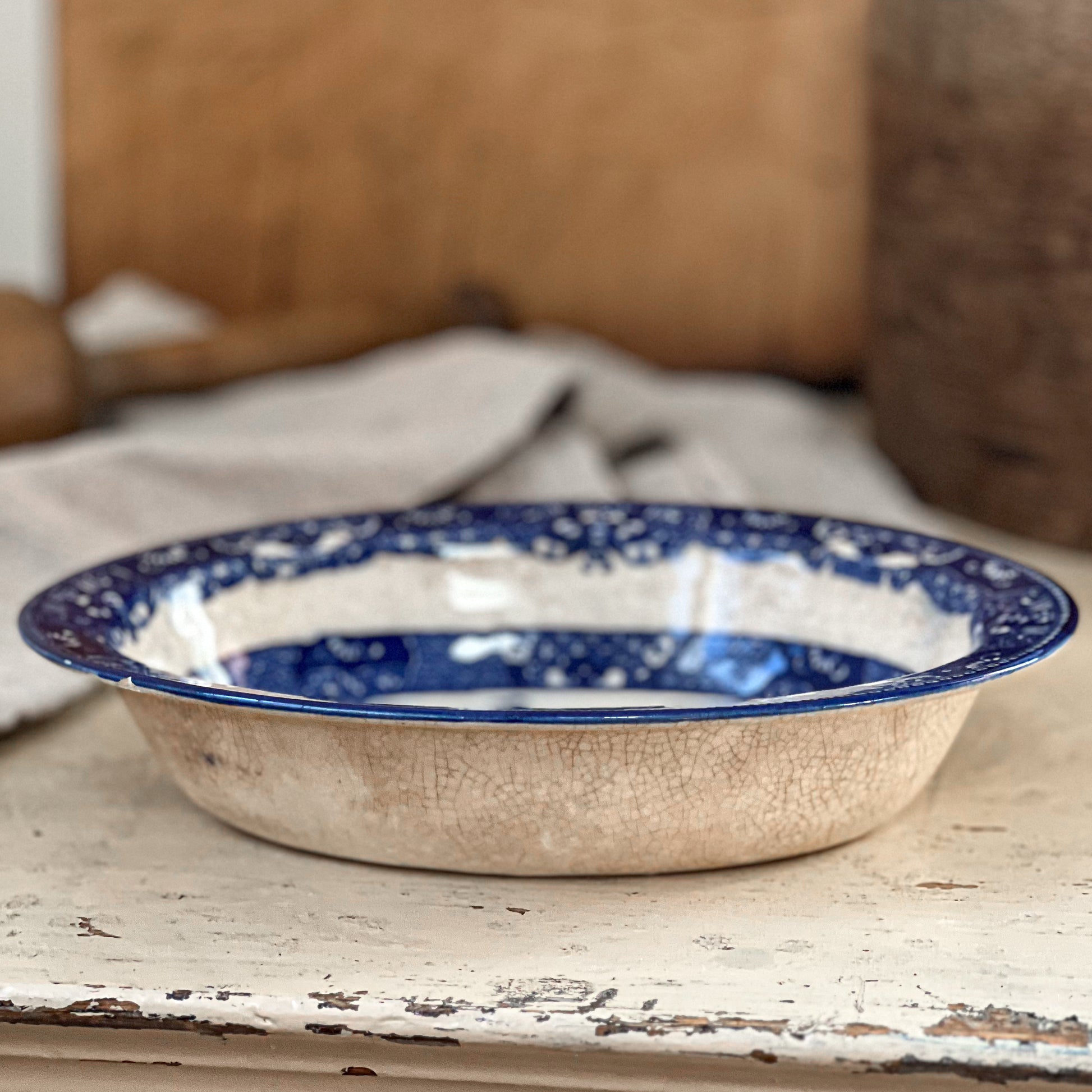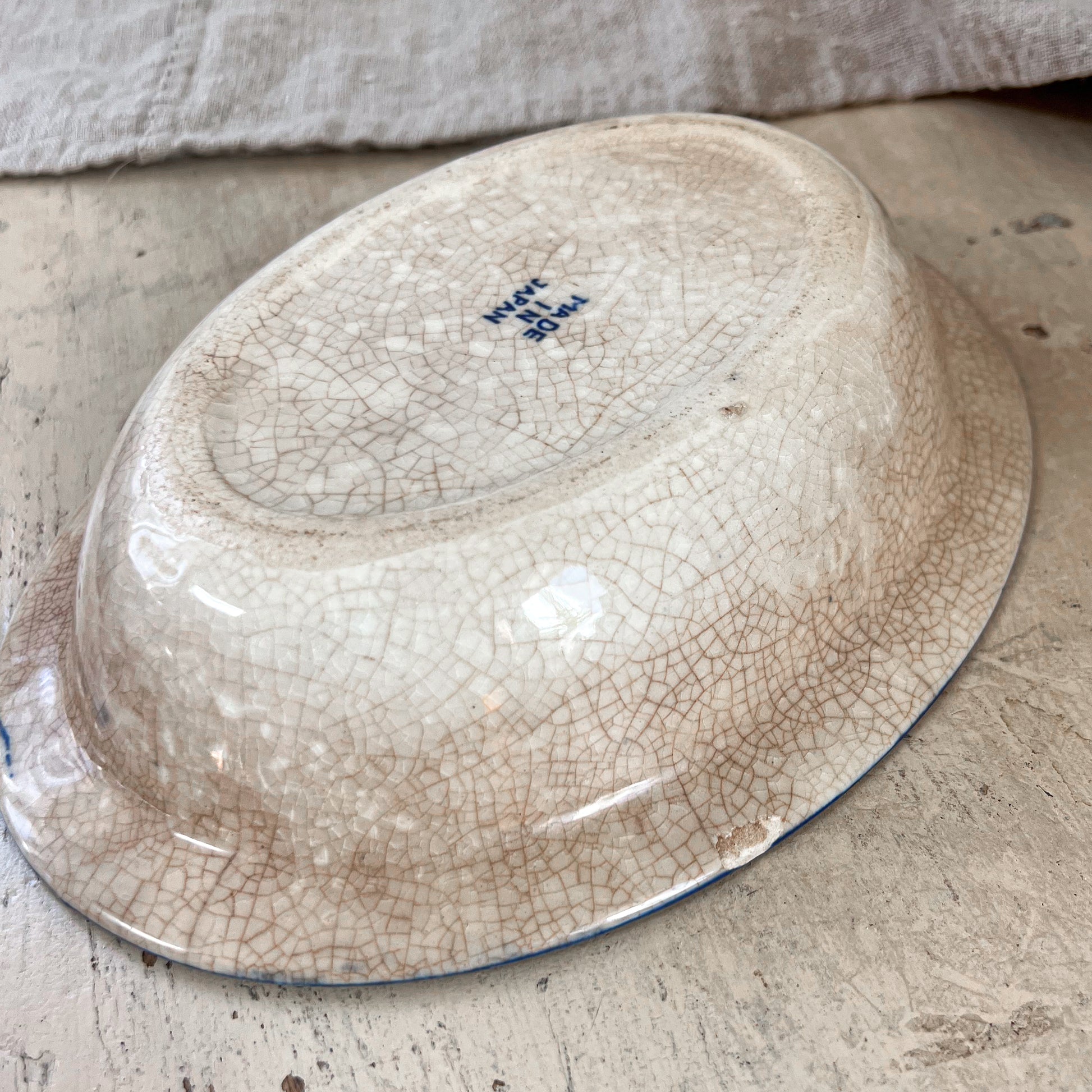 Lovely stained and crazed Ironstone Blue Transferware Dish, marked Made in Japan