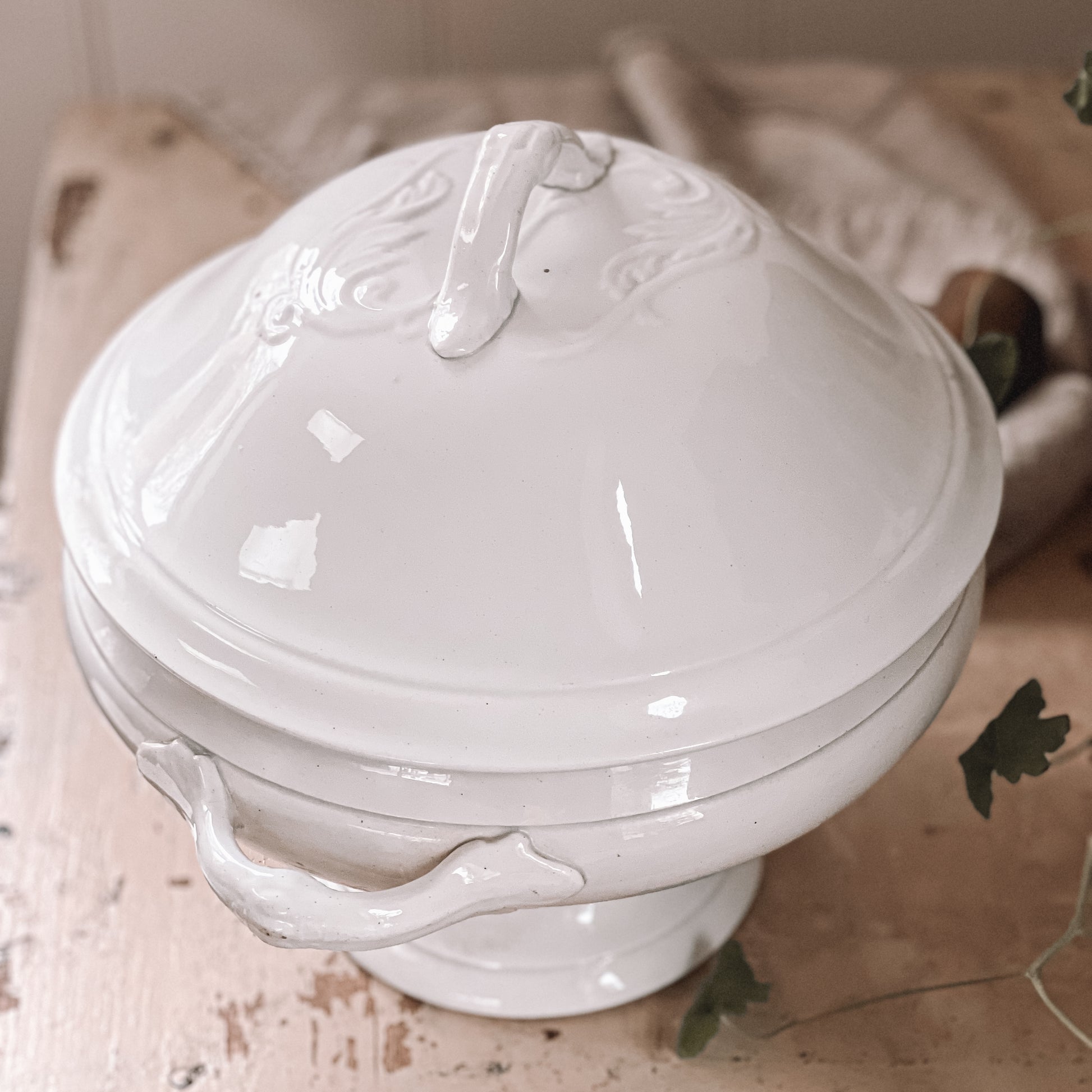 Antique French Ironstone Footed Tureen with Lid, stamped Staint-Amans Lt Hamabe