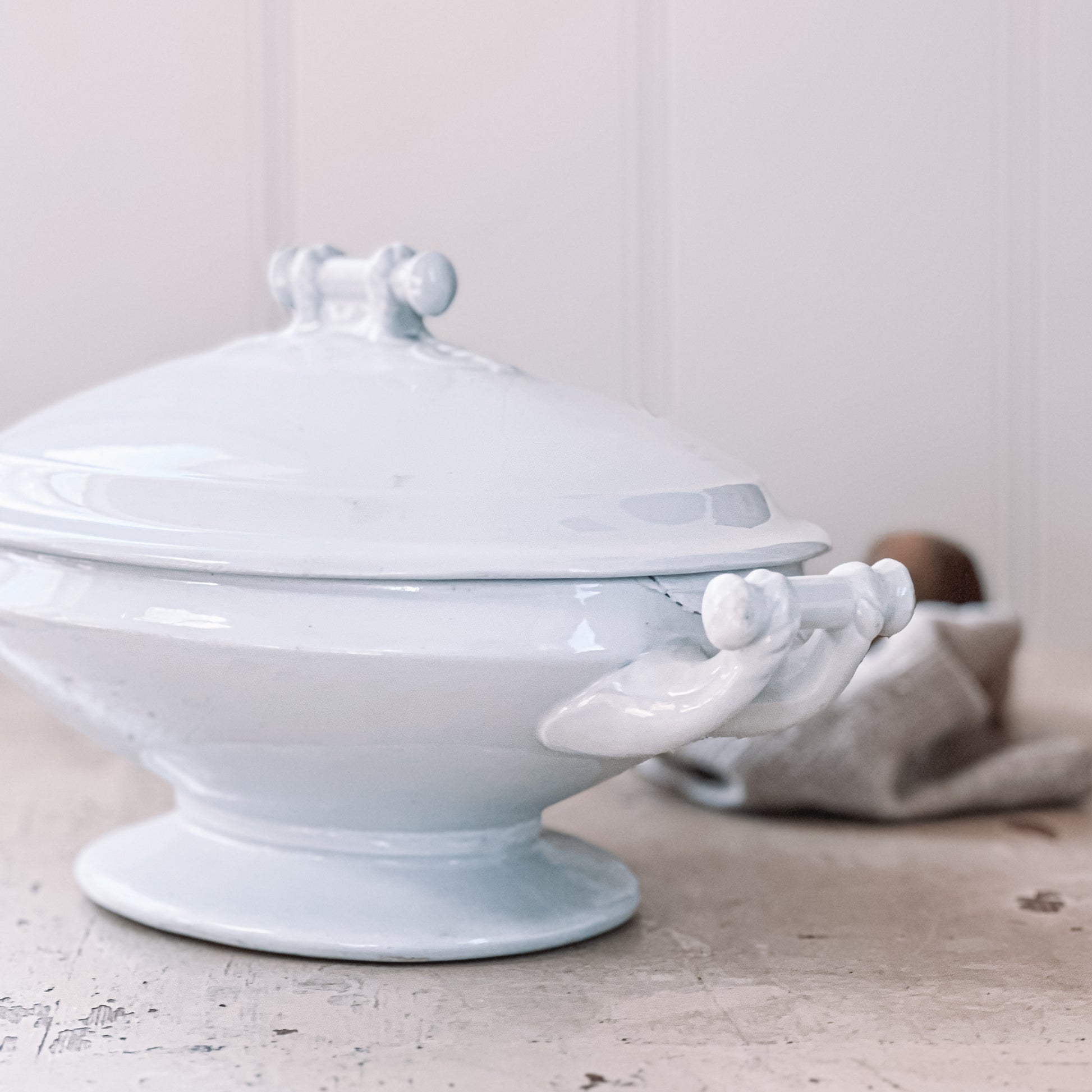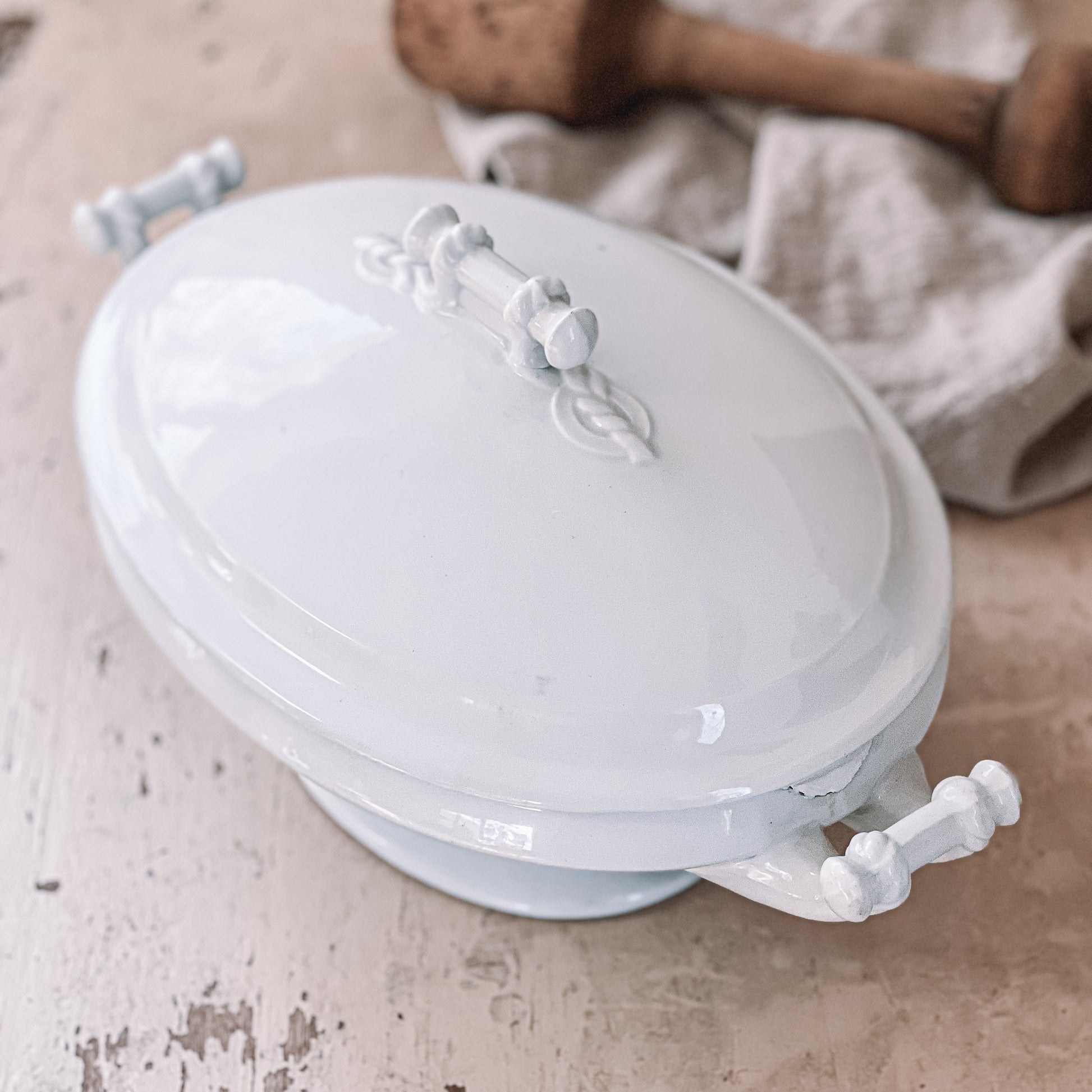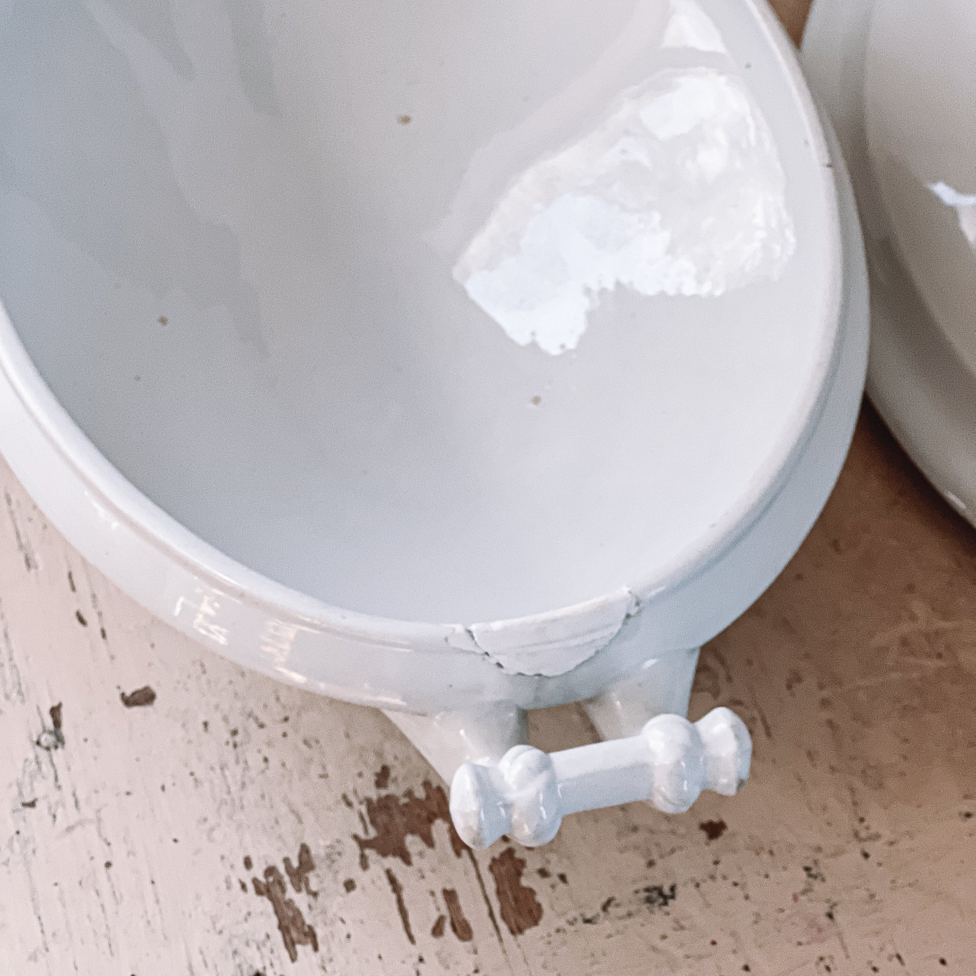 Antique Ironstone Lidded Tureen with rope details, Stamped J&G Meakin Hanley England, old hairline on base and side near handle has been repaired, lid handle has some imperfections