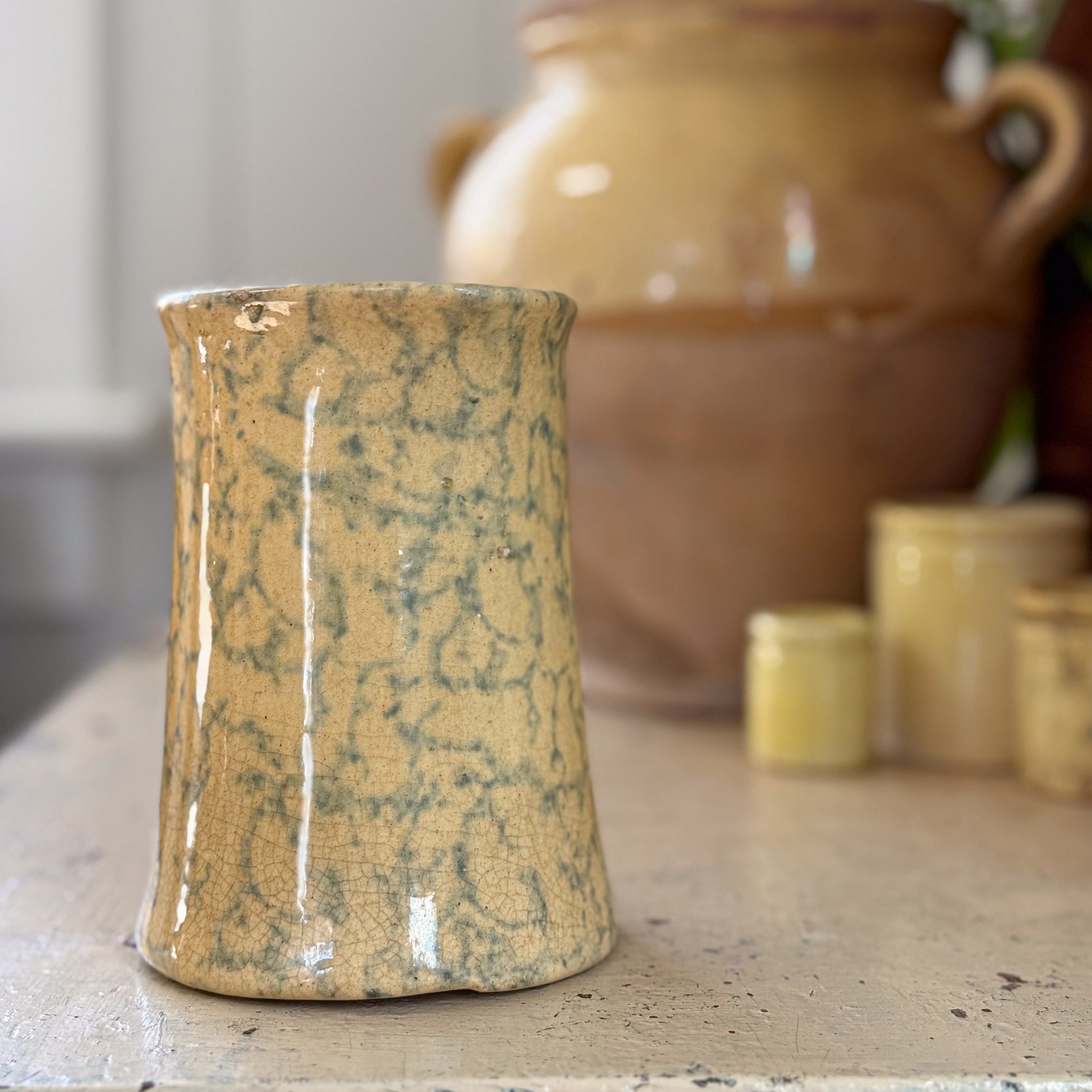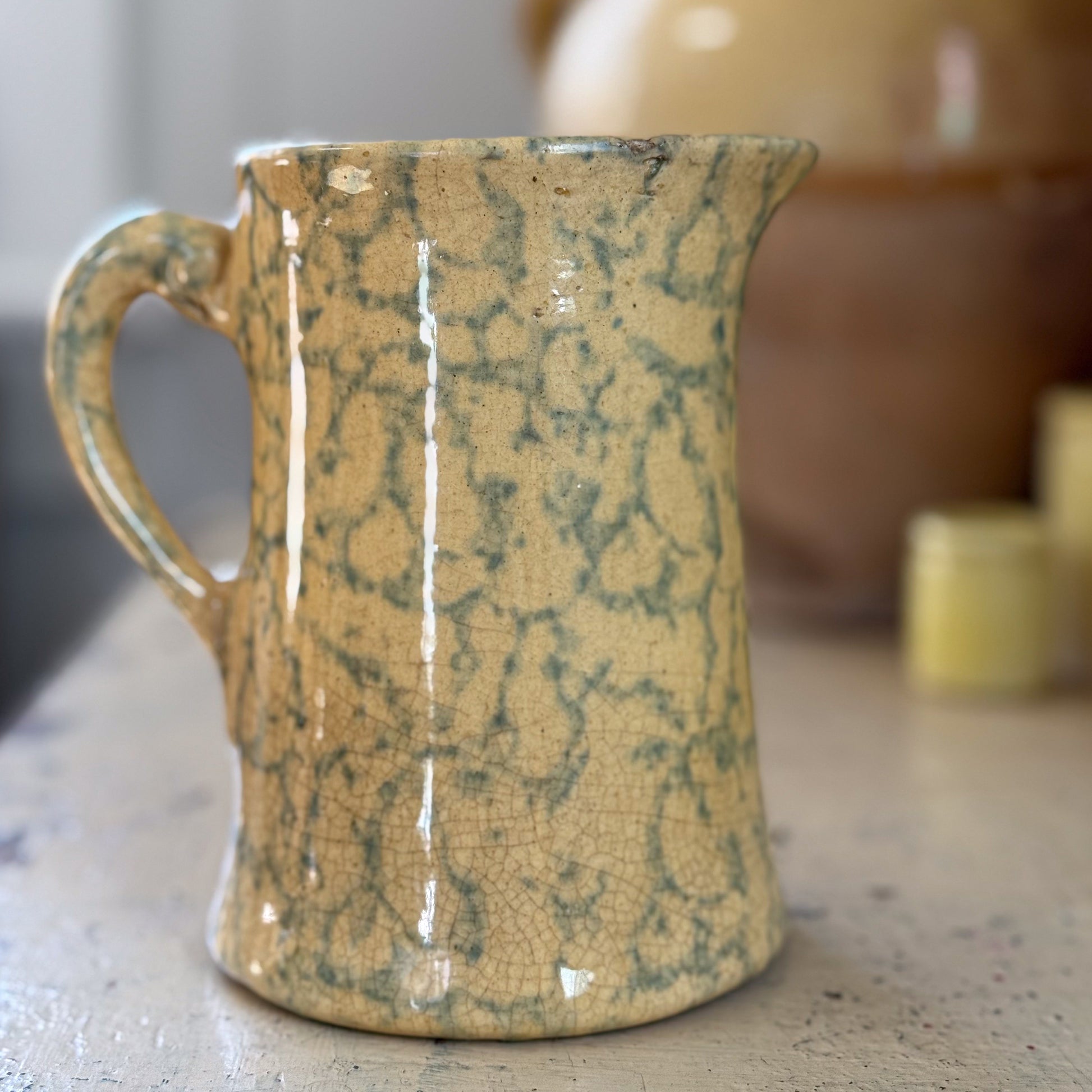 Antique Yellowware and Blue Spongeware Stoneware Pitcher