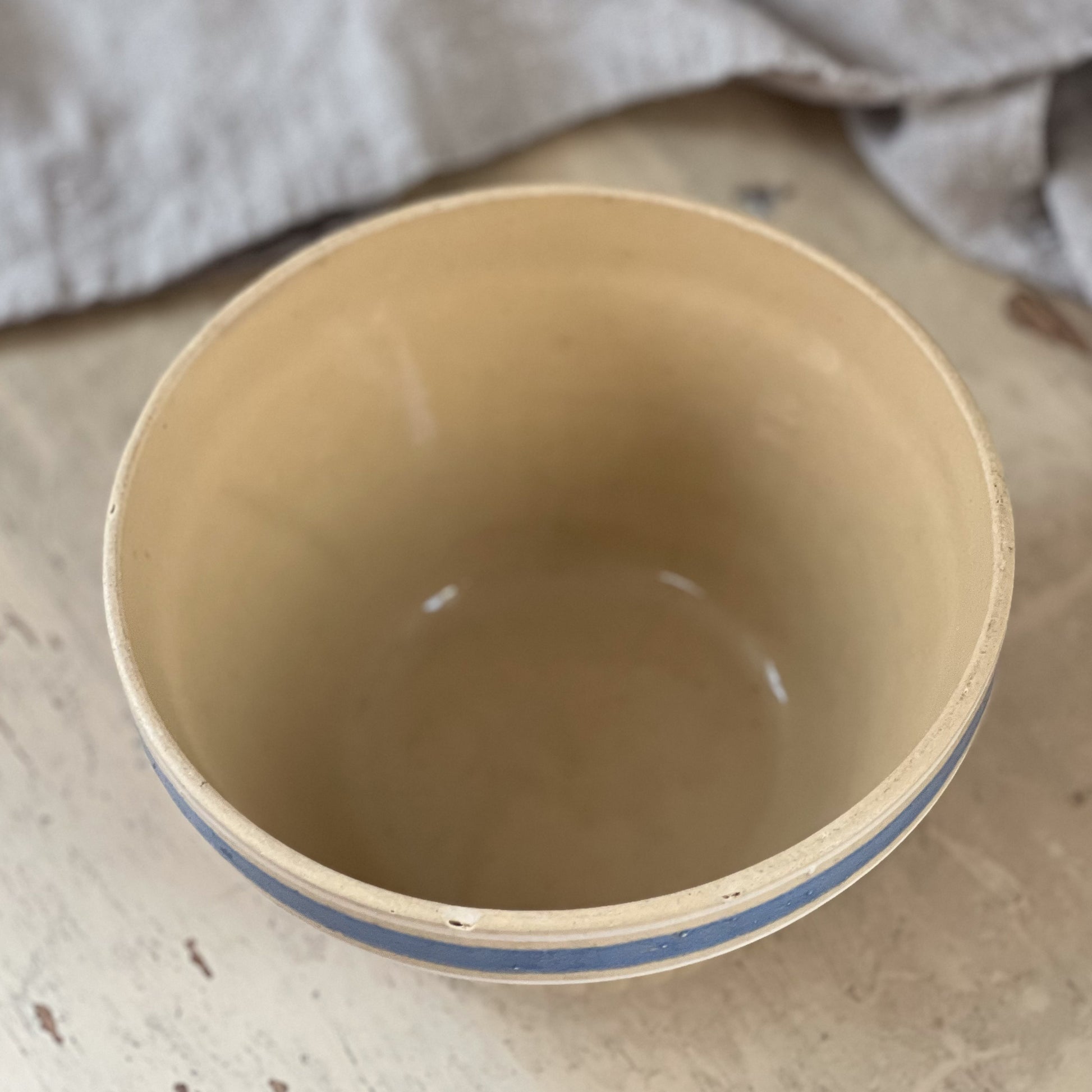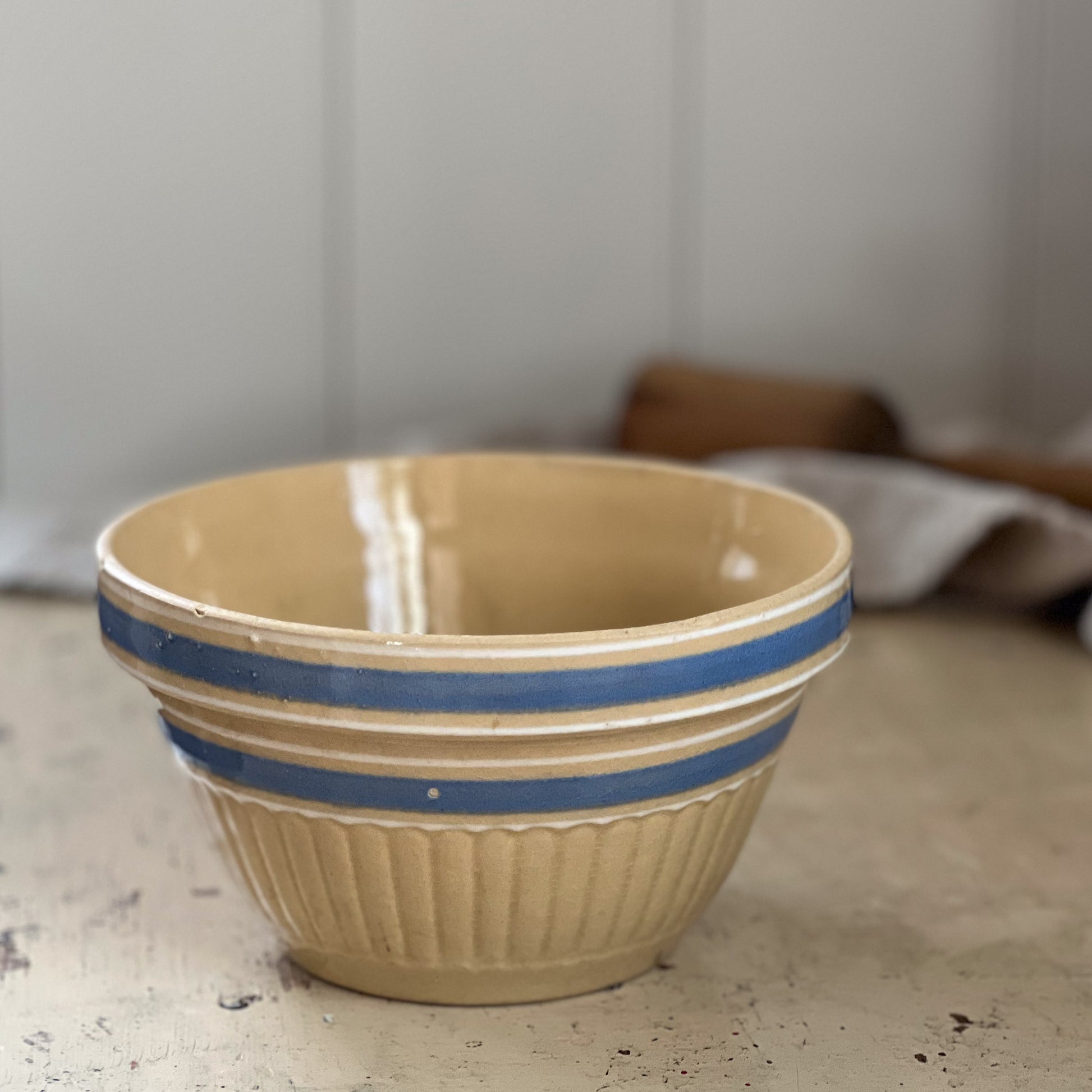 Blue and White Stripe Creamy Yellowware Farmhouse Mixing Bowl